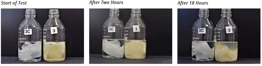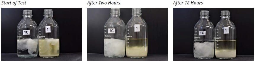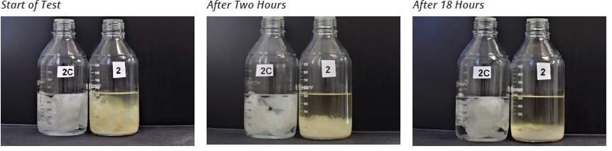 Se aplicó PAPERATOR™ a frascos de prueba que contenían papel higiénico, una funda para el asiento del inodoro, una toalla de papel de cocina y trozos de cartón. El experimento demostró que la desintegración del papel con PAPERATOR™ ocurre muy rápidamente. Después de sólo dos horas, el papel higiénico y la funda del asiento del inodoro estaban casi completamente desintegrados. La toalla de papel también había comenzado a desintegrarse en los bordes. Después de 18 horas, la muestra de cartón comenzó a mostrar digestión y ya estaba separada en partes más pequeñas. Los resultados fueron los siguientes y se esperaba que siguieran mejorando con el tiempo.